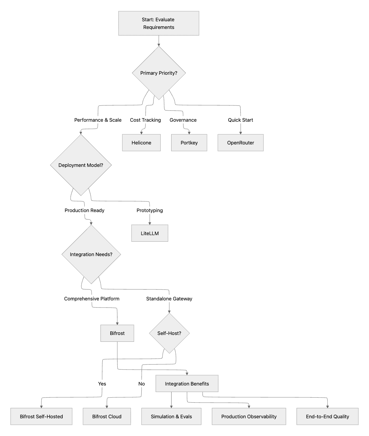 | Bifrost | 11µs overhead @ 5K RPS | Zero-config, comprehensive platform integration | Local/Cloud/VPC | Production AI at scale |