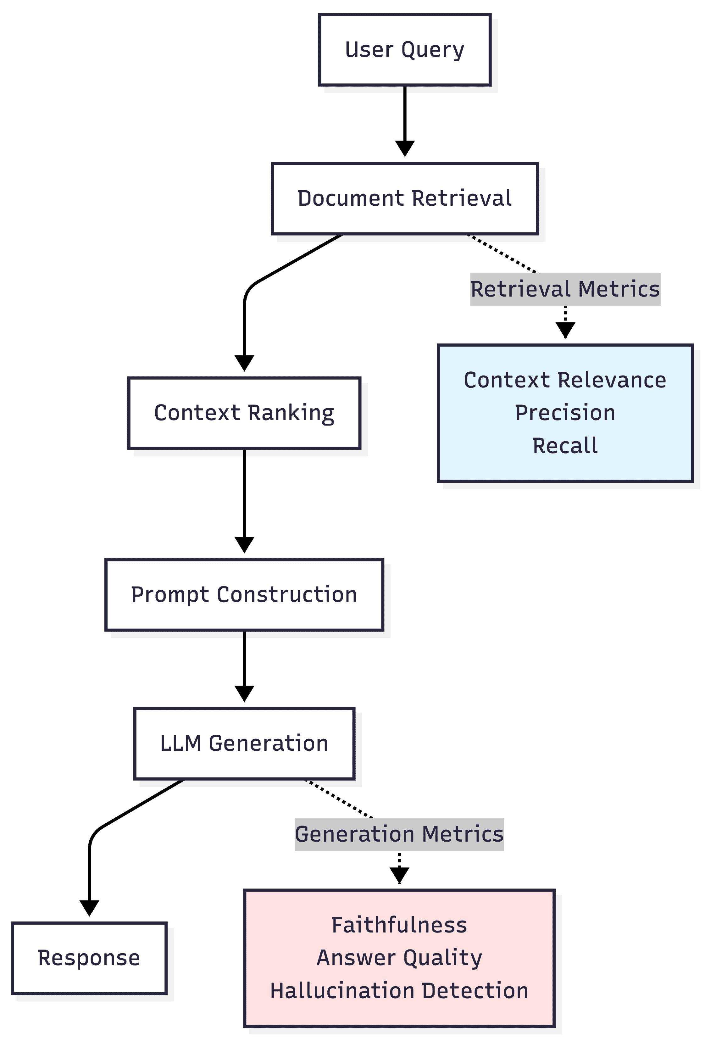 Retrieval-Augmented Generation (RAG) systems combine document retrieval with language model generation to provide grounded, contextually relevant responses. According to research published in Evaluating RAG systems: A comprehensive framework, effective assessment requires measuring retrieval and generation quality independently to identify specific pipeline failures.