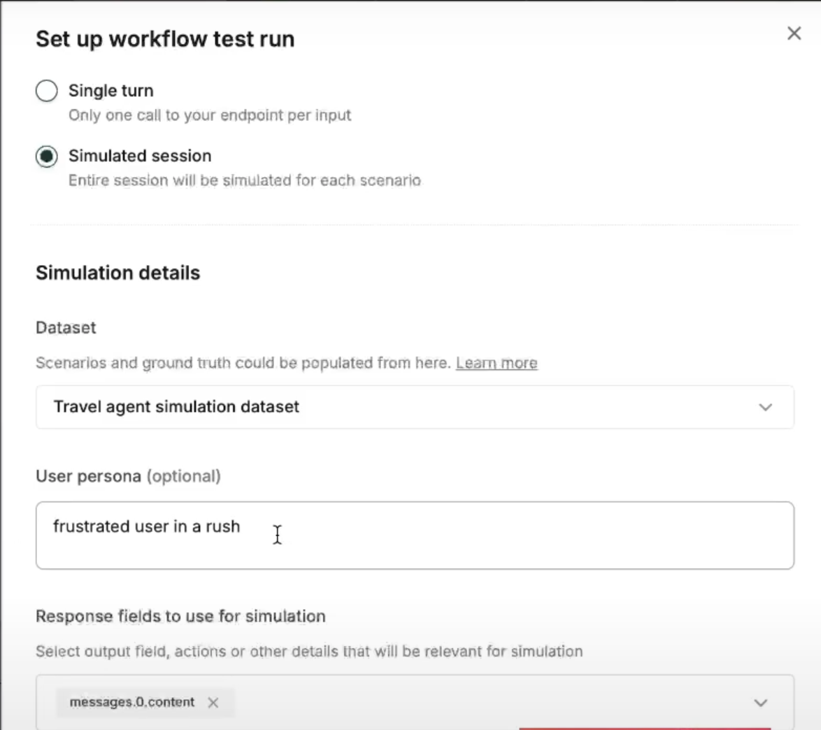 For this blog, we’re using the flight booking agent as our reference point. Every example, workflow, and test comes straight from how you’d build, simulate, and evaluate a travel agent in production. Key concepts include: