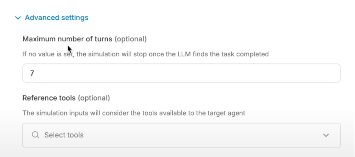 - Advanced settings• Max turns caps loops (e.g., 8).• Reference tools