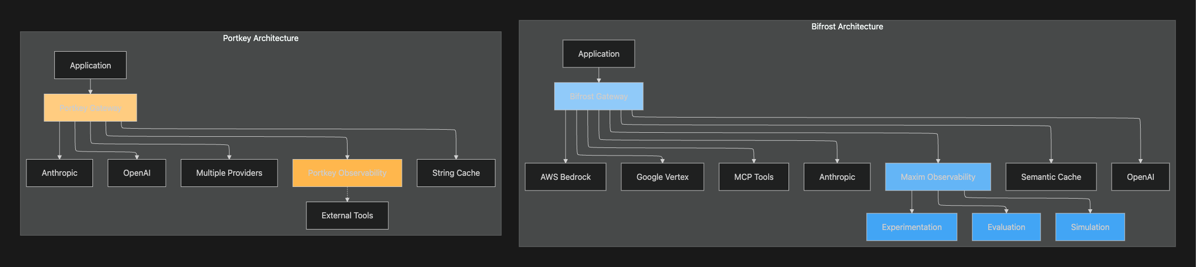 Portkey operates as an isolated gateway requiring separate tools for these functions. Organizations face integration complexity, data silos, and duplicated workflows when stitching together multiple platforms.