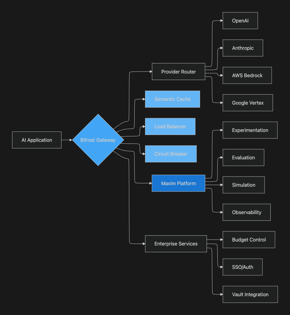 Bifrost represents Maxim AI's production-grade AI gateway designed specifically for enterprises building reliable, scalable AI applications. Unlike standalone gateway solutions, Bifrost integrates seamlessly with Maxim's comprehensive platform spanning experimentation, simulation, evaluation, and observability.