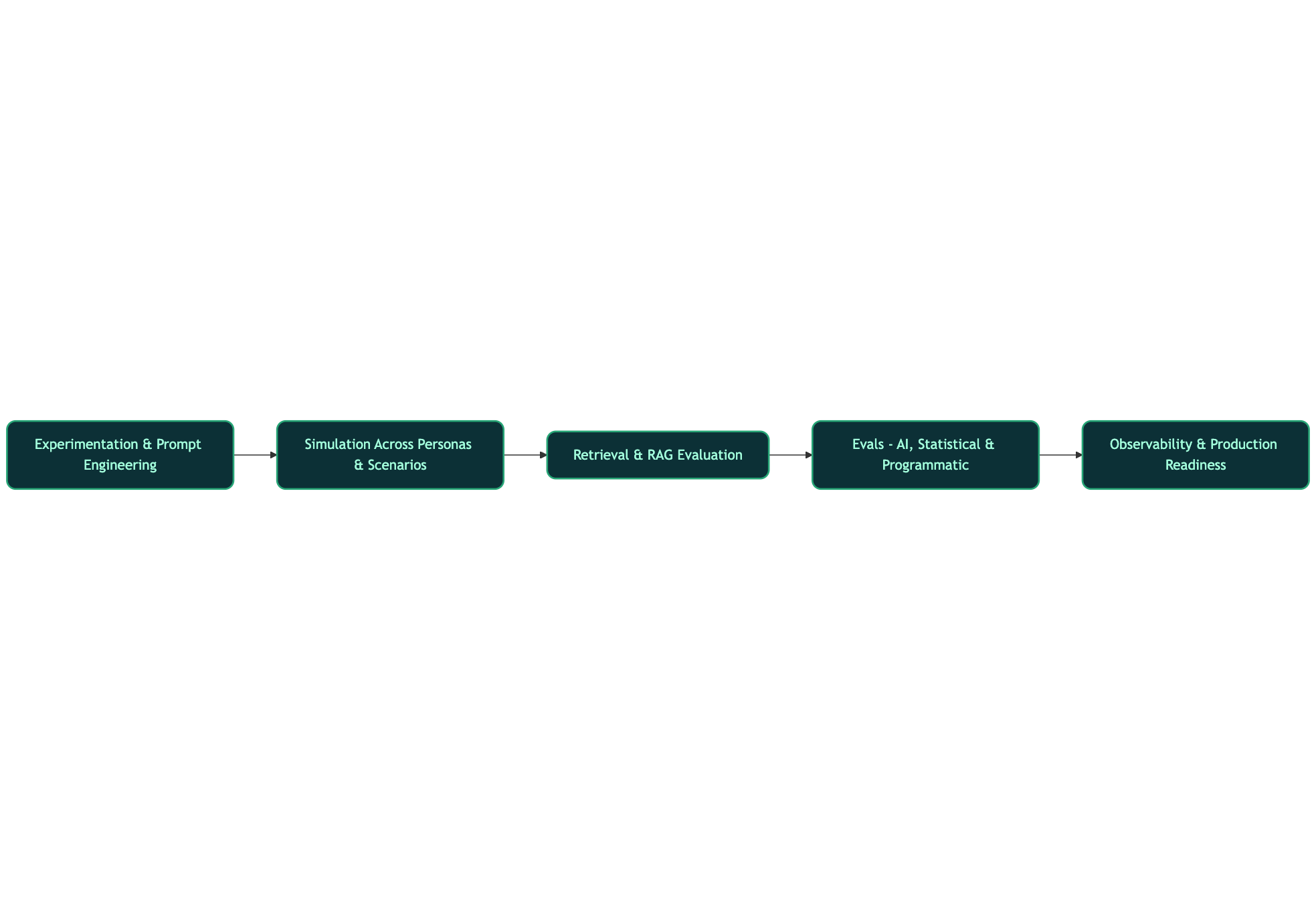 Agents are multi-step systems; single-turn tests are insufficient. Simulate real conversations and task trajectories across persona diversity and scenario complexity. This detects path-dependent failures (e.g., an agent picks an inefficient tool chain or fails midway through a task).