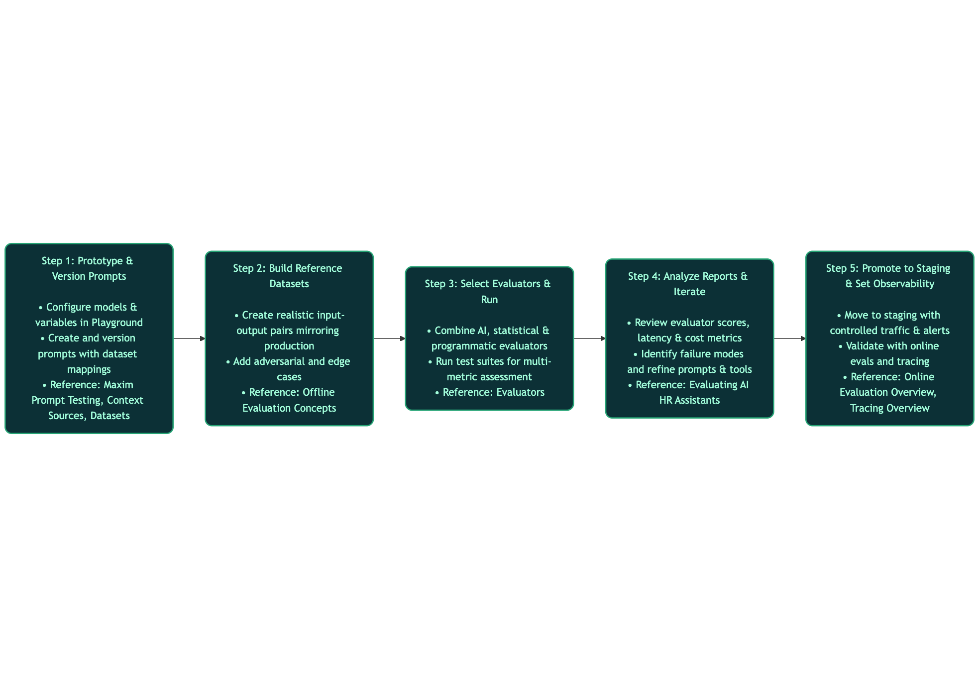 Start by building high-quality prompts and configurations in a controlled environment. Version prompts, test variables, and compare models, temperature, and max tokens.