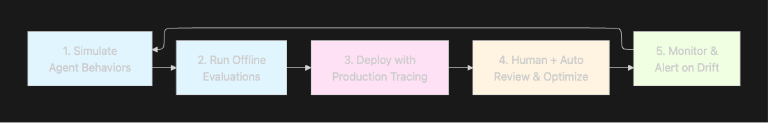 This loop unifies LLM evaluation, agent evaluation, agent tracing, and human oversight so teams can ship reliable agents faster.