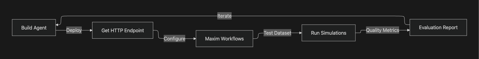 The key advantage of modern no-code builders is that they all expose HTTP endpoints or webhooks, making them perfect for evaluation through platforms like Maxim AI. By connecting your agent's endpoint to Maxim, you can run comprehensive simulations, measure quality across multiple dimensions, and ensure production readiness without additional development work.