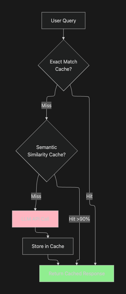 - Semantic Cache: Embedding-based similarity matching for related queries