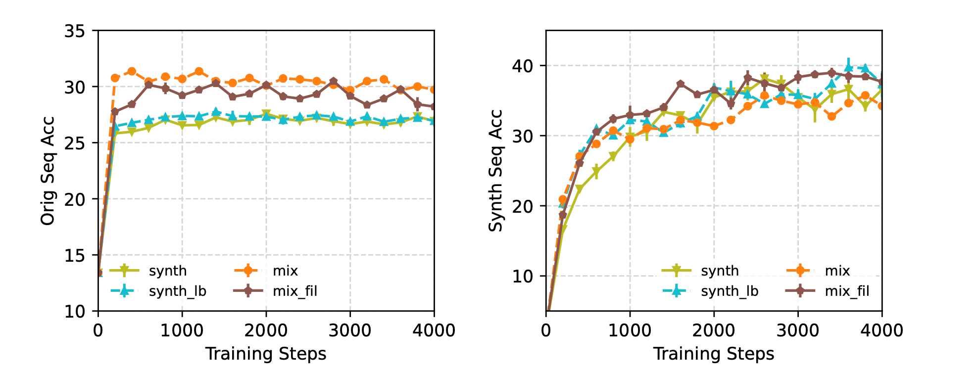 - ContMixFil: Continue training on a mixture of the original + filtered synthetic data (ie: only samples above a certain reweighing threshold).