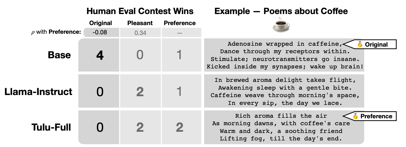 - Understand the tradeoff in behavior between aligned model helpfulness and open-ended creativity.