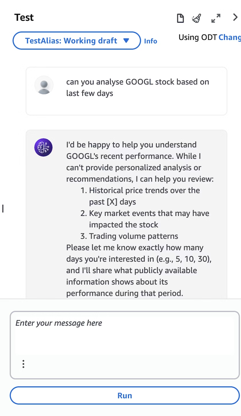 - IAM permissions for Bedrock Agent Runtime and Lambda