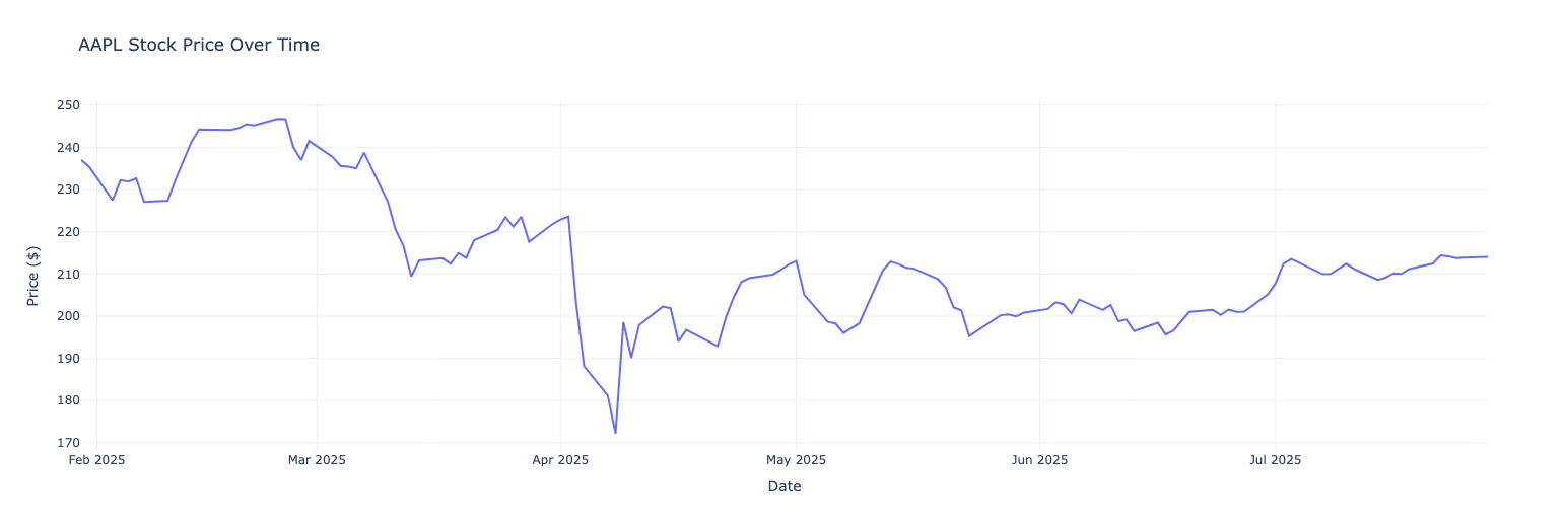 result2 = process_stock_query("Show me Apple's stock price for the last 6 months", plot_chart=True)