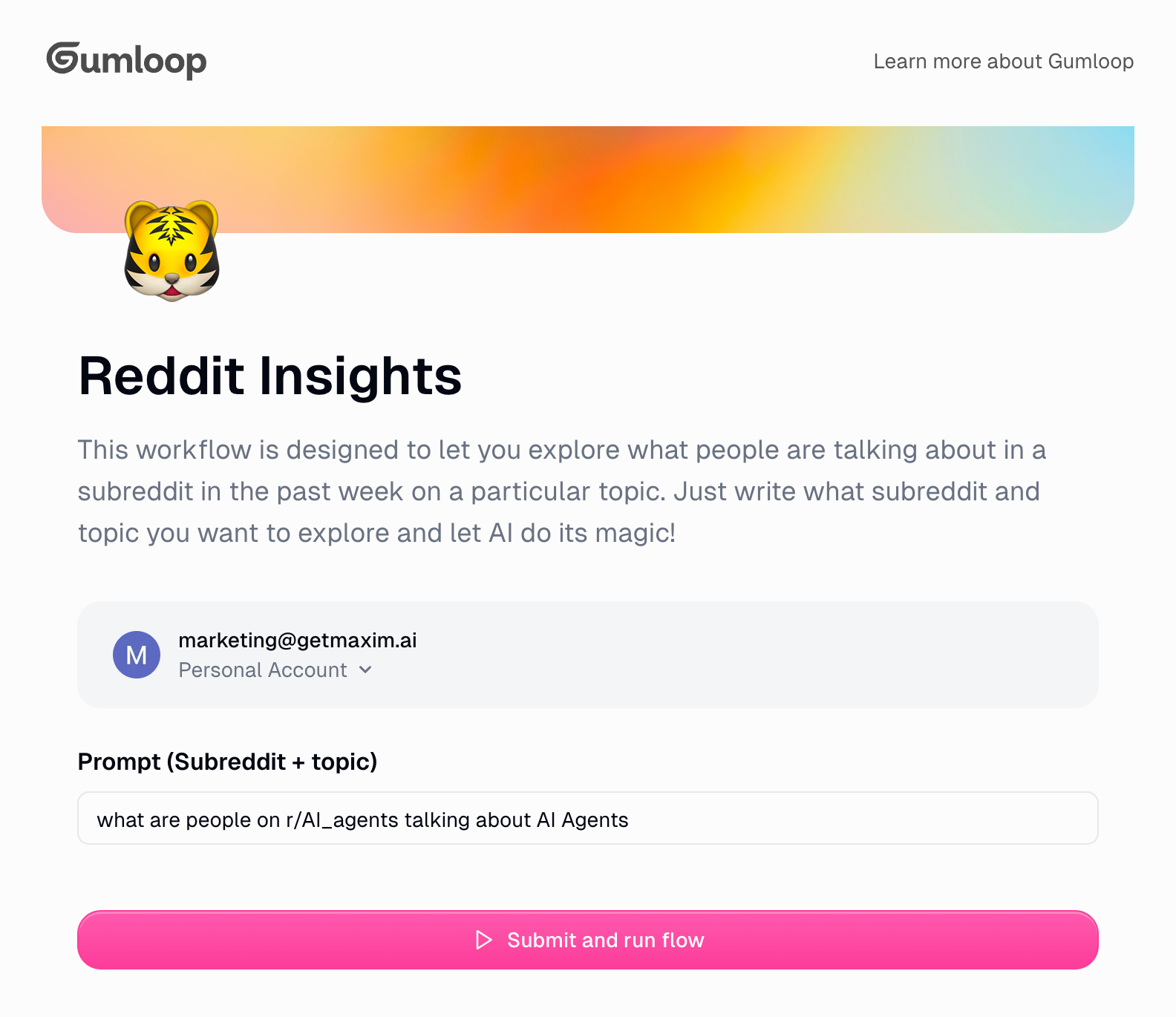 That’s why we built a Gumloop workflow powered by LLMs to cut through the chaos. Give it a topic and a subreddit, and it analyzes the most engaging discussions from the past week, summarizing sentiment and surfacing insights.