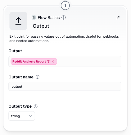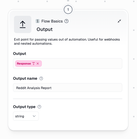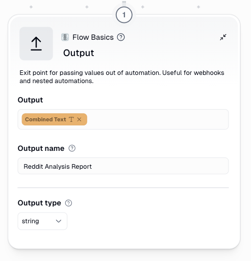 We select the Output field as the “output” object our gumloop workflow is returning.