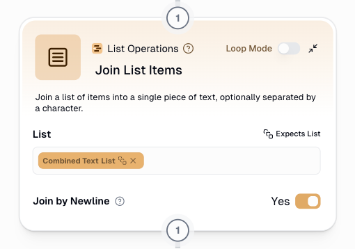 After creating the reddit post list we use a combine list node to combine all the list items into a single piece of text.