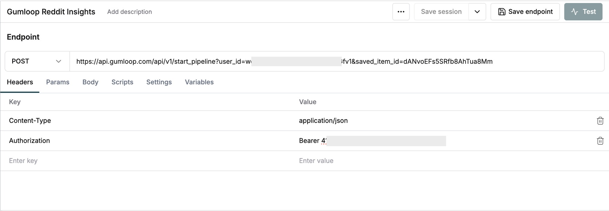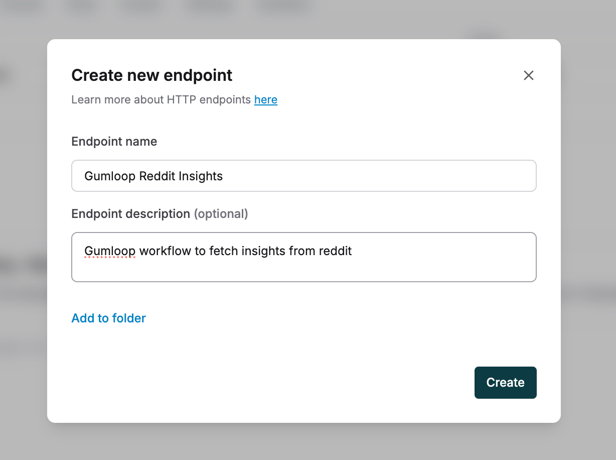Lets name our endpoint “Gumloop Reddit Insights”.