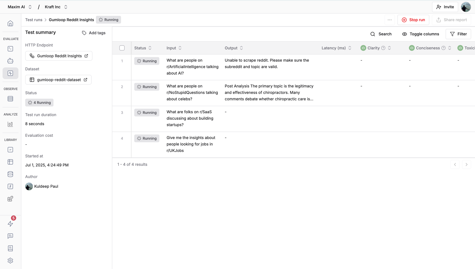 Evaluating the Gumloop Reddit Insights Workflow with Maxim AI